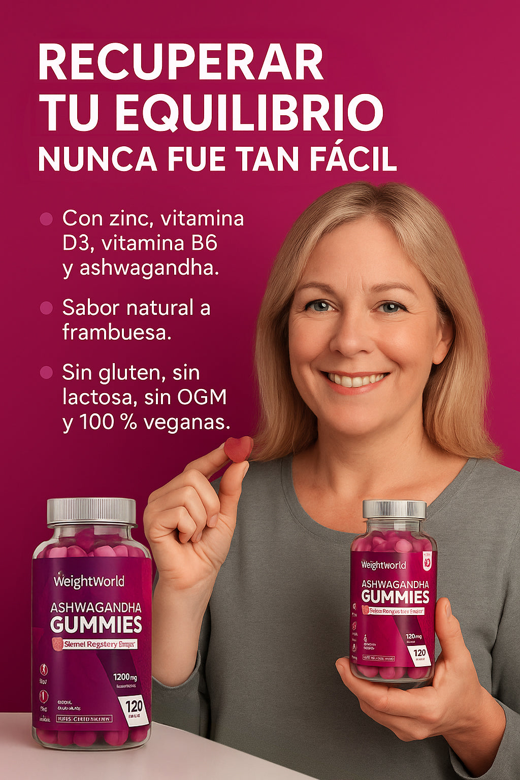 Equilibria® es un suplemento en gomitas que equilibra tus hormonas, reduce el estrés y mejora tu bienestar desde dentro. Ideal si sientes hinchazón, fatiga o cambios de ánimo.