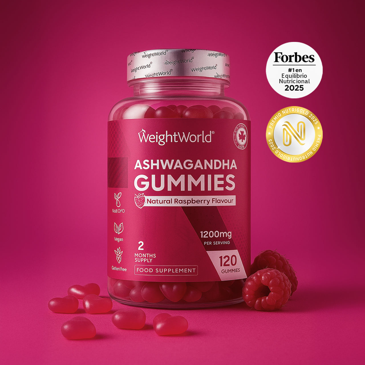 2 gominolas al día. El envase cuenta con 120 gominolas, con suministro para 2 meses.